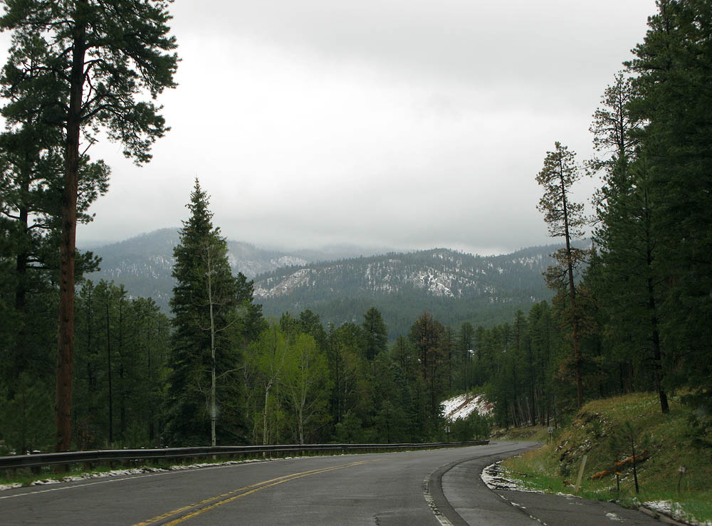 Continuing on around the caldera, we encountered some light snow and beautiful scenery.